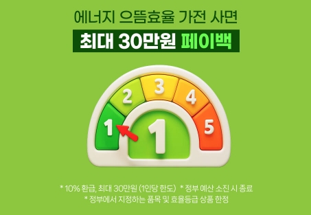 에너지소비효율 1등급 가전 구매 시 구매가의 10% 환급(최대 30만 원)